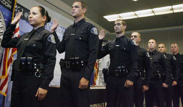 Seven Glendale police officers were sworn in at a ceremony Thursday, bolstering the department’s ranks and the number of Armenian-Americans in the force...