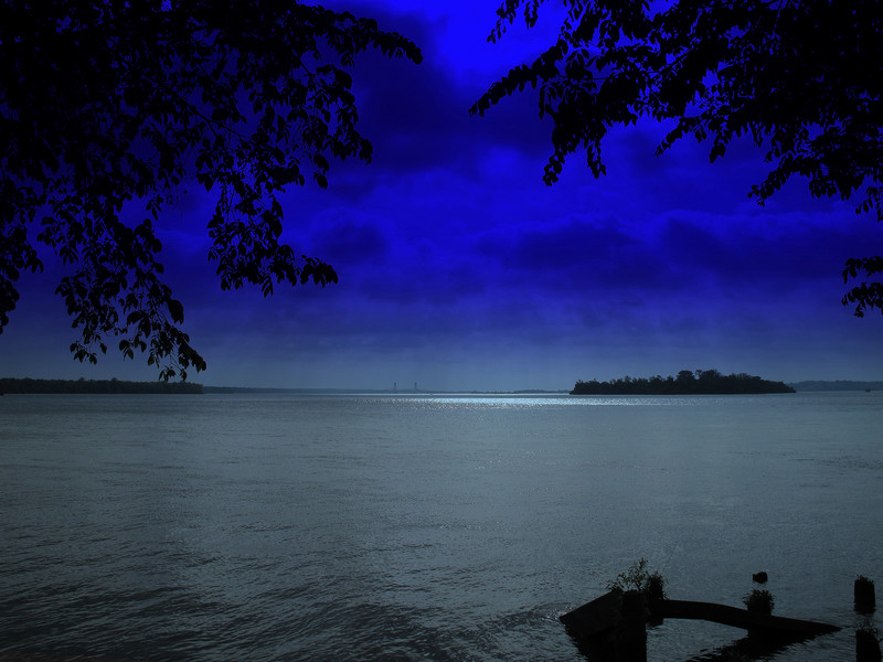 Spring showers form above the James River at City Point in Hopewell, Virginia..