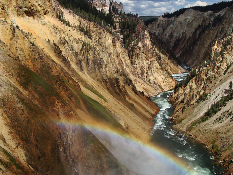 a view from the brink of the Lower Falls of the Yellowstone River in Yellowstone National Park