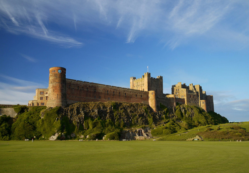 Bamburgh Castle is on the North East coast of England, was built around 1070 and restored in 1900